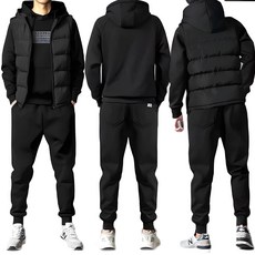 해피유통 가을겨울 경량 운동복 후드맨투맨 루즈핏 패딩조끼 상하의 바지 3종트레이닝세트 남성L0827