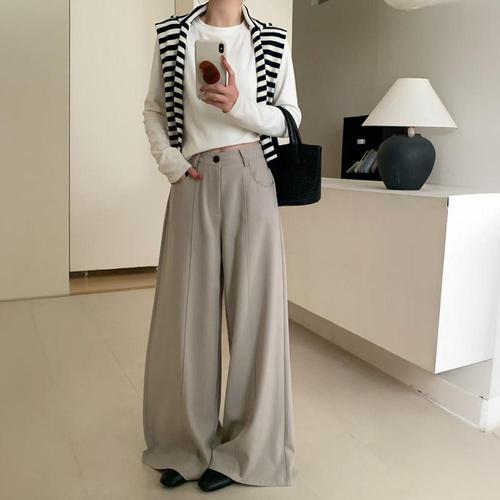 [에이치플러스몰]4색 핀턱 슬랙스 와이드 통바지 와이드밴딩팬츠 팬츠