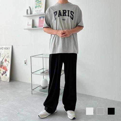 남자 가을 와이드 핀턱 스트링 슬랙스 팬츠 AC-PTA-Q075-블랙
