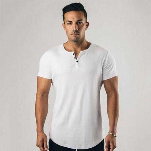디바옴므 심플한 투버튼 핸리넥 티셔츠