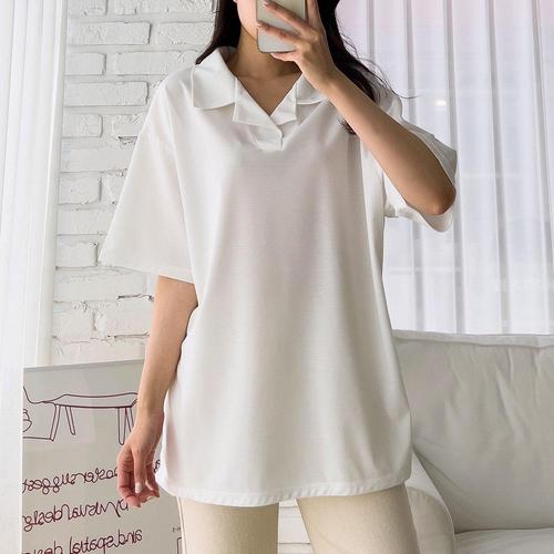 [리빌모아]남여공용 링클프리 레이어드 오버핏 반팔티 5C-TSH-Q035-화이트