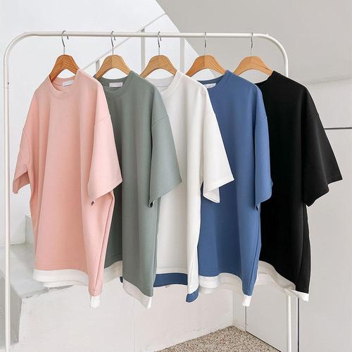 리얼타임 오버핏 두꺼운 반팔티/ 남자 여름 안비치는 흰색 흰 티 10수 면 커플 티셔츠 빅사이즈 (8color)