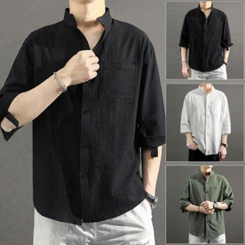데일리 캐주얼 남성 여름 차이나 카라 린넨 7부 셔츠