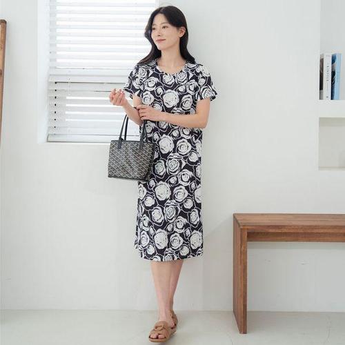 하랑이플 시원한 쿨 주름 반팔원피스(~88) 여름 홈웨어 여성잠옷 빅사이즈 냉감 원피스 엄마옷
