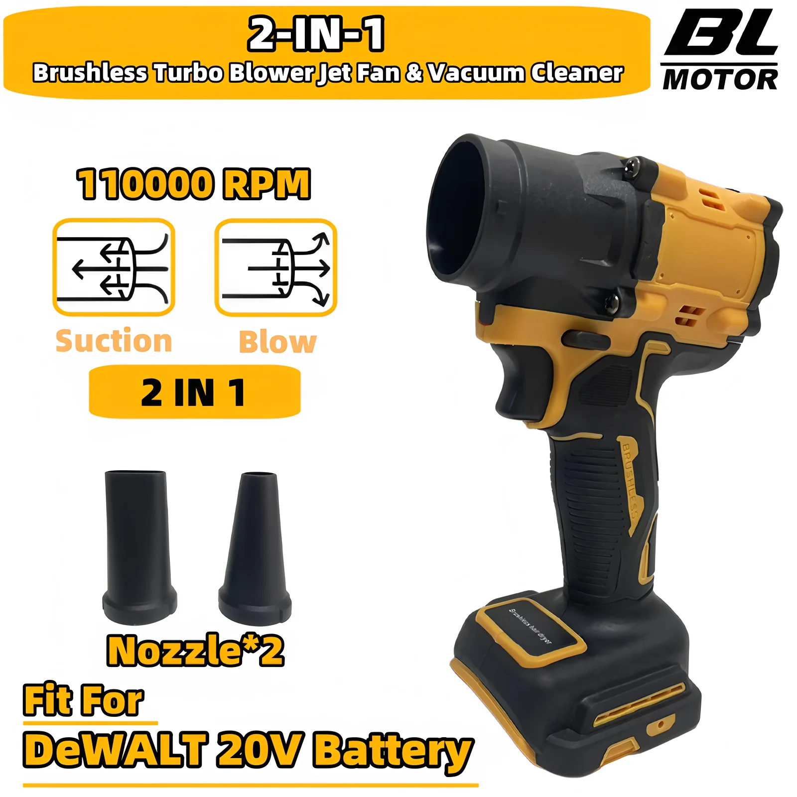 디월트 20V 배터리 브러시리스 2-in-1 터보 블로워 제트 팬 & 진공 청소기 110000RPM 고속 핸드헬드 먼지 제거 도구