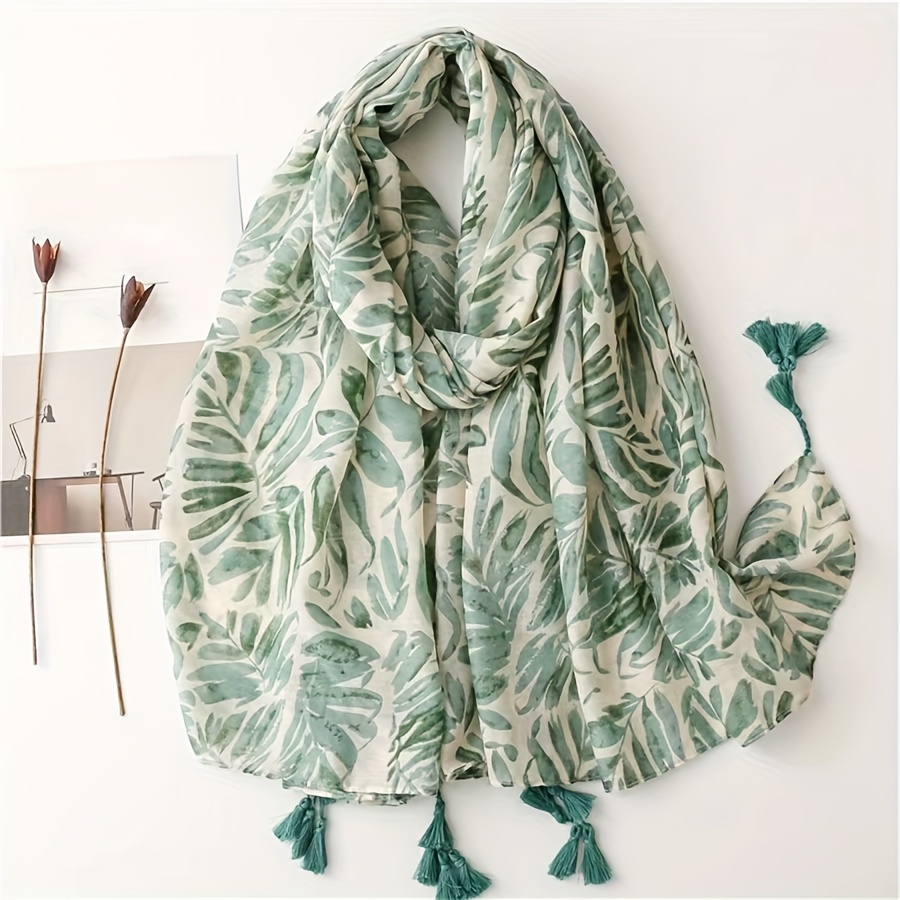 TEMU 새로운 여성용 스타일 그린 바나나 잎 소프트 캐주얼 프リン지 스카프 패셔너블 랩 숄 다용도 아웃도어 액세서리
