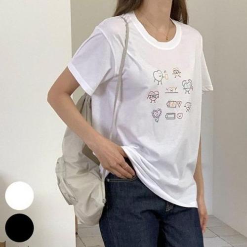 트렌디 드로잉보드 티셔츠 [라잇티] 야광프린팅 형광 코튼 블랙 반팔티