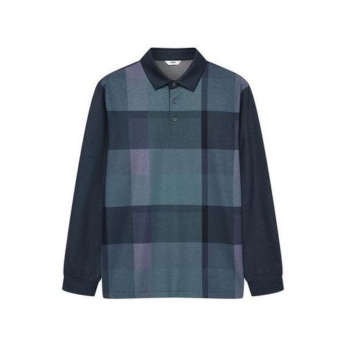 [노티그]라지 체크 긴팔 카라티 네이비