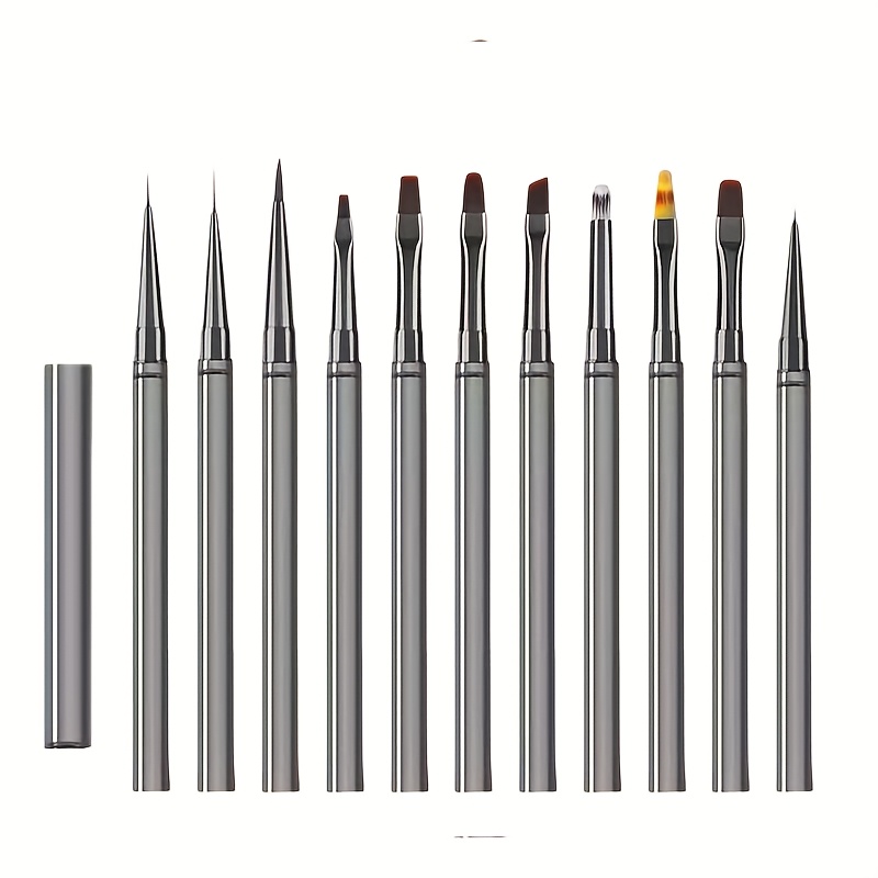 TEMU 12개 네일 아트 브러쉬 세트 (젤 그라데이션 네일 용품 포함) - 전문가용 매니큐어 & 페디큐어 도구, 정밀한 디자인을 위한 나일론 브러쉬모, 네일 아트용 브러쉬 12개 포함, 매니큐어 필수품 | 세련된 브러쉬 디자인 | 내구성 좋은 브러쉬, 네일 아트 용품|젤네일