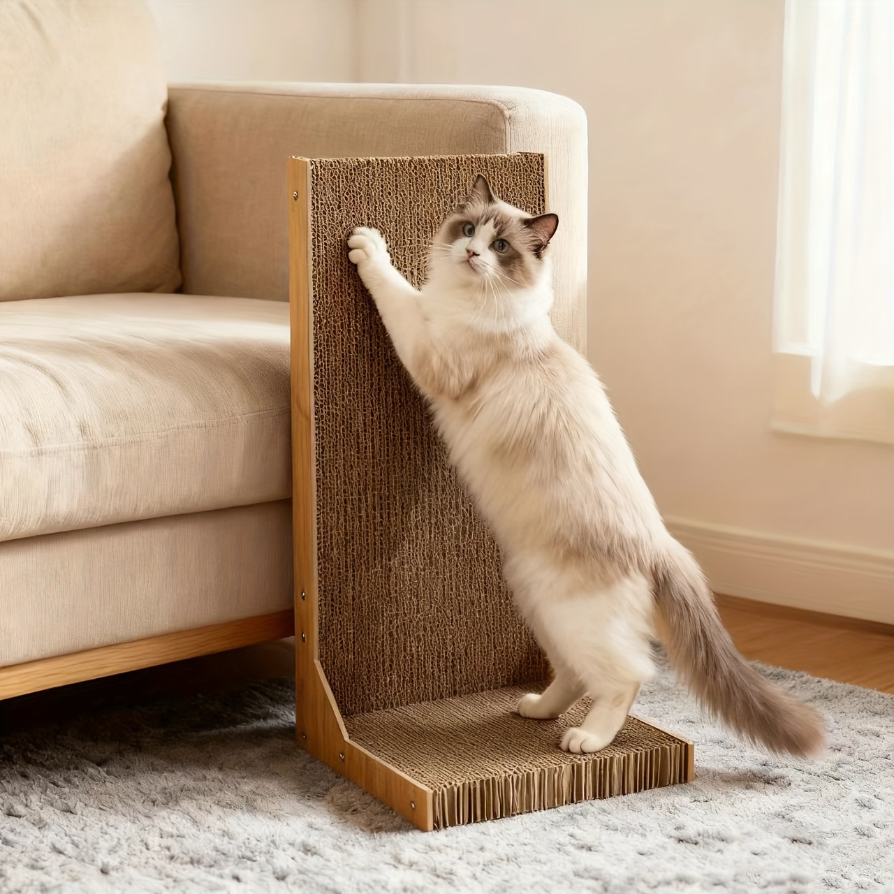 TEMU L자형 고양이 스크래칭 보드 - 튼튼한 골판지, 털 빠짐 방지, 스크래치 방지, 고양이에게 이상적, 소파 보호에 완벽, 고양이 장난감, 고양이 가구