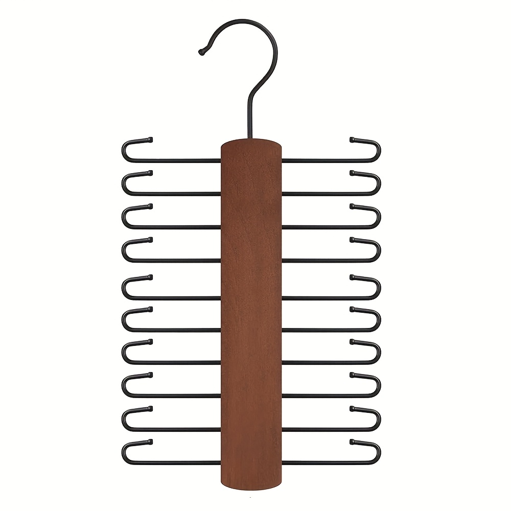 TEMU 남성용 나무 넥타이 정리대 – 공간 절약형 20단 후크 행거, 360° 회전, 레트로 스타일 옷장 정리용 (넥타이, 벨트, 스카프, 손수건 보관), 내구성 강한 나무/금속 소재