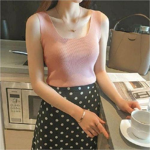 [신상오픈런]여성 단색 스판 스퀘어넥 민소매 니트 탑