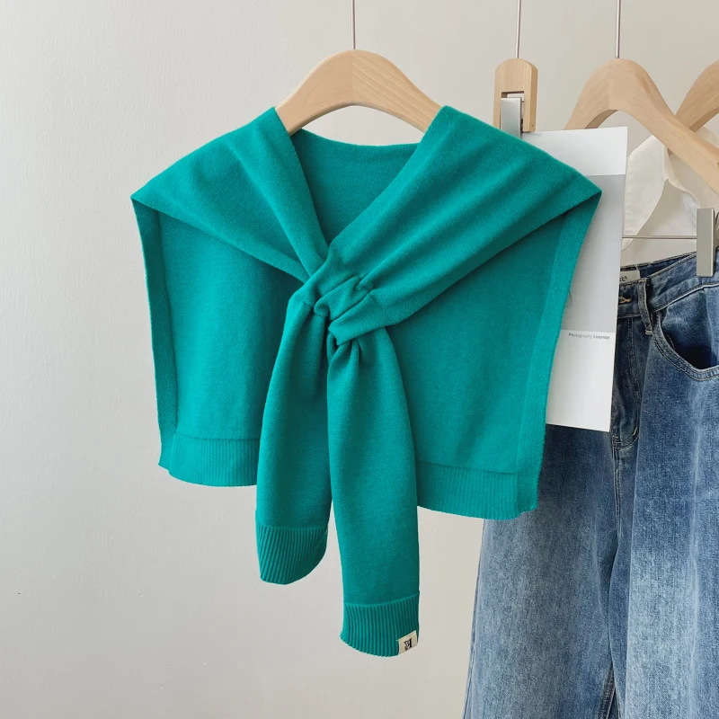 봄 가을 여성용 크로스 니트 숄 넥 보호용 작은 숄 고급 울 스카프 에어컨 방용 가짜 칼라