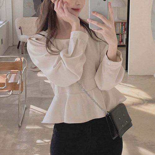 [셀럽하우스]셔링 HUND6961 주름 포인트 스퀘어넥 라인 깔끔한 블라우스