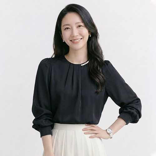 NB3057 셔링 진주 장식 포인트 라운드넥 긴팔 블라우스