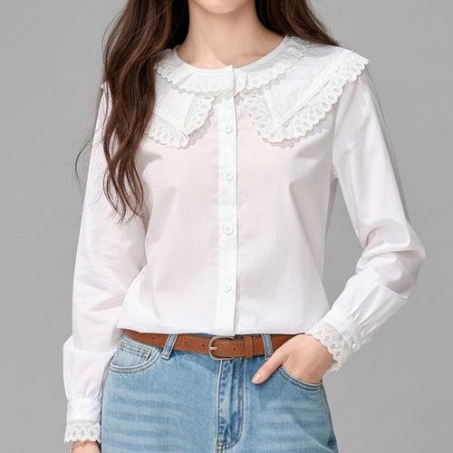 [퀸이즈] [~77까지] 포가 레이스 카라넥 포인트 블라우스