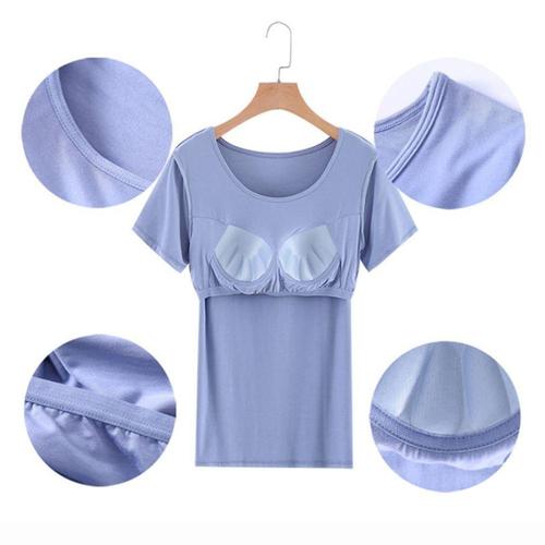 [셀럽하우스]캡잠옷 QSMU6346 노브라 여성 티셔츠 브라 쿨 기능성 반팔