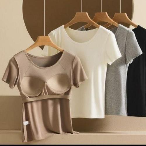 캡내장 노브라 반팔티셔츠 브라탑 모달 홈웨어 스판
