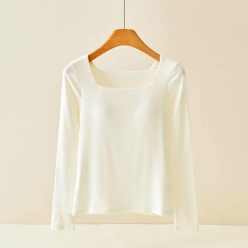 여성용 모달 일체형 브라탑 긴팔 티셔츠