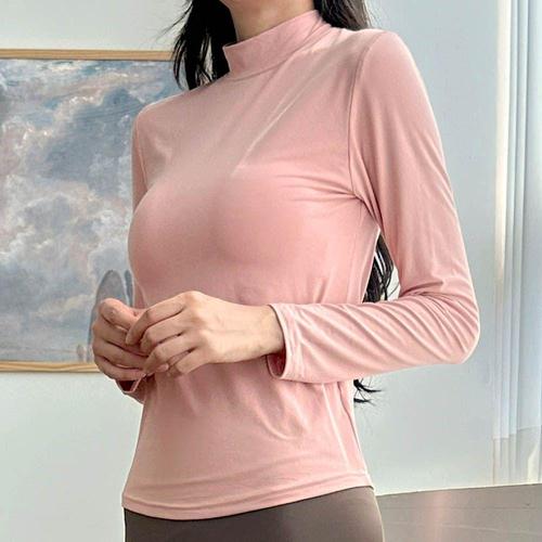 [셀럽하우스]여성 JPHM7603 무지 폴라티 패드있는 노브라 목폴라 긴팔티