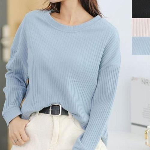 [셀러허브_여성트랜드패션]여자 노브라티 티셔츠 라운드넥 브라캡내장 긴팔 3컬러 골지
