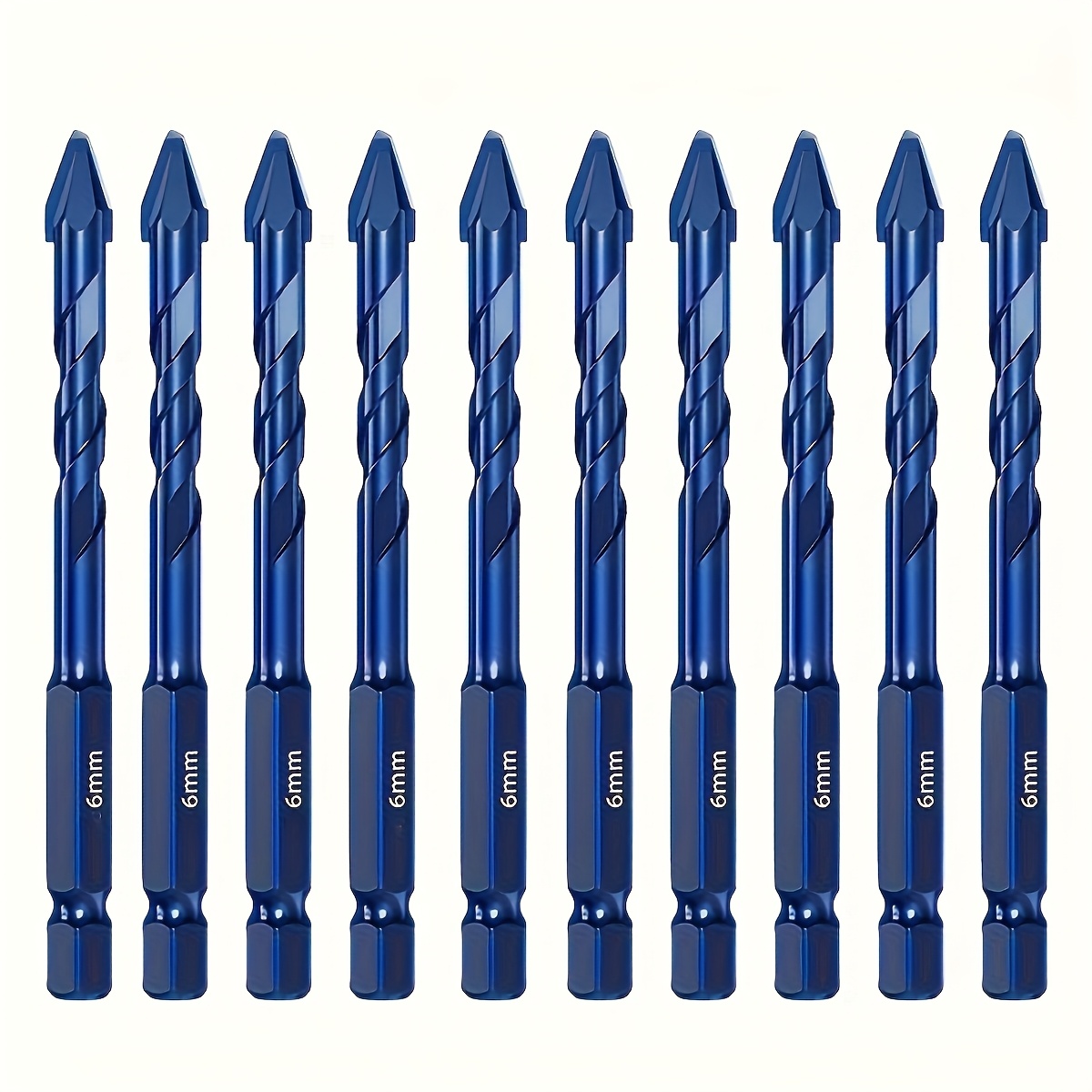 TEMU 10개 세트 헤비듀티 6mm 전문가용 이심 드릴 비트 세트 - 유리, 세라믹, 벽돌 및 콘크리트 드릴링 키트 (스파이럴 팁 & 중앙 구멍 포함) - 핸드헬드 드릴 호환 (조립 불필요)