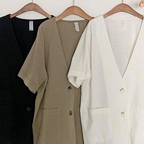[엄지척]노카라 반팔 심플 린넨 자켓 여성 여름 데일리 재킷_20339814_667501