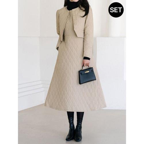[모리스커밍홈]라운드 퀼팅패딩 원피스 자켓 세트_M2509SE063C