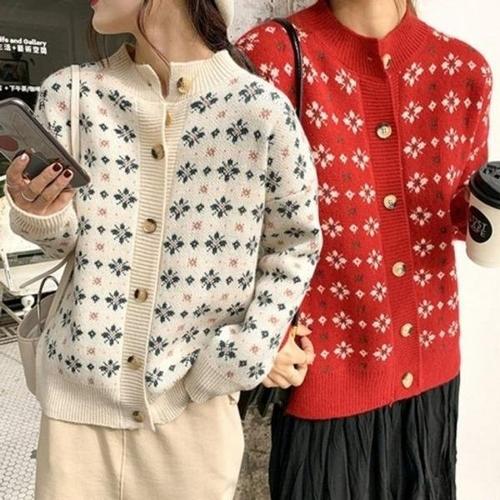 [엄지척]겨울 패턴 데일리 눈꽃 라운드넥 보온 데일리 여성 니_19873941_667501