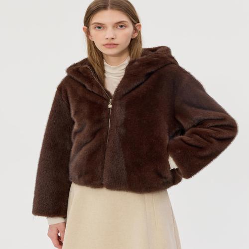 질스튜어트 뉴욕 여성 [시즌오프]브라운 Faux 페이크퍼 포켓 후드 밍크 무스탕 점퍼 (JSJU5D550W3)