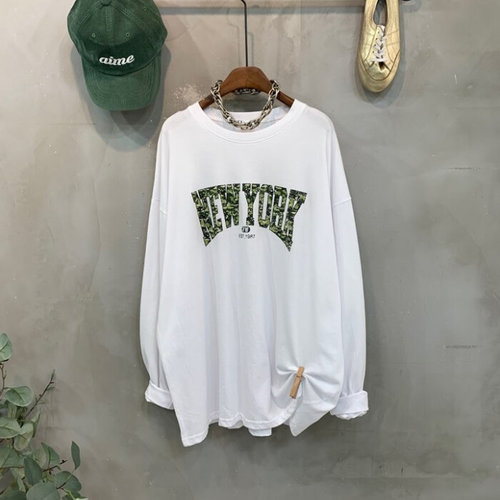 |KMT8BC6|뉴욕 미국여행 나염 순면 라운드 오버핏 긴팔티셔츠