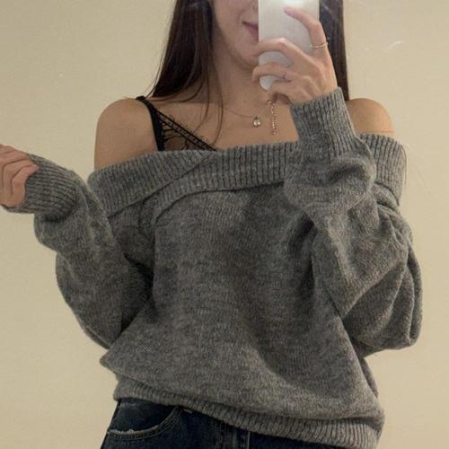 [옷자락]여자 여리핏 레이스 언발 오프숄더 가을 겨울 니트