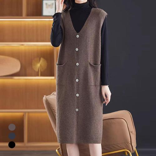 도톰버튼 뷔스티에 니트 롱 원피스 (one color)