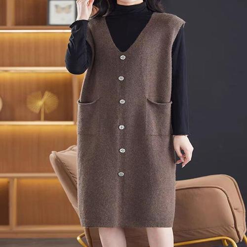 [셀러허브_여성트랜드패션]ONM 꽈배기 니트 롱 원피스 버튼업 V넥 슬림핏 골지