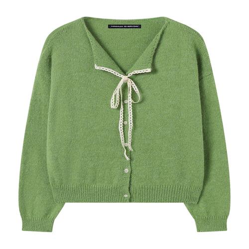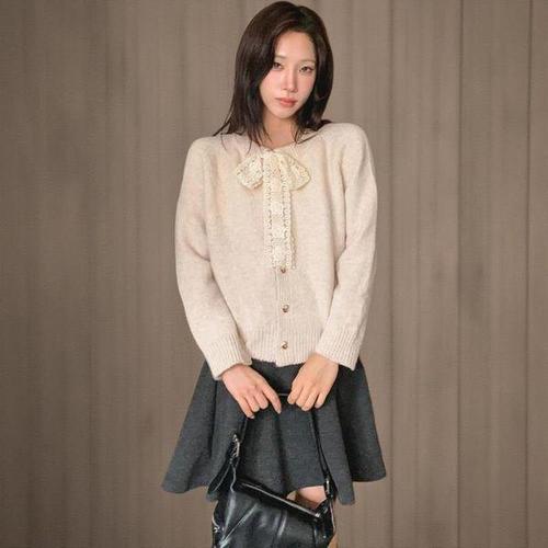 [신상오픈런]여성 레이스 리본 울 니트 가디건 단추 스타일