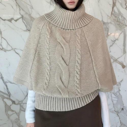 [미라클세븐]여성용 따뜻한 꽈배기 터틀넥 니트 케이프 가을 겨울용
