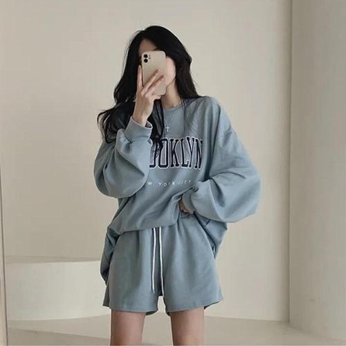 [스타일리쉬바이피클]니트 후드 집업 반바지 트레이닝복 세트