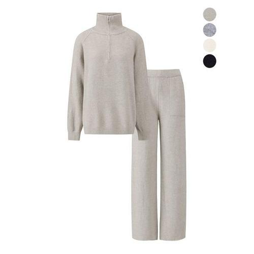 여성 반집업 카라 니트 팬츠 셋업