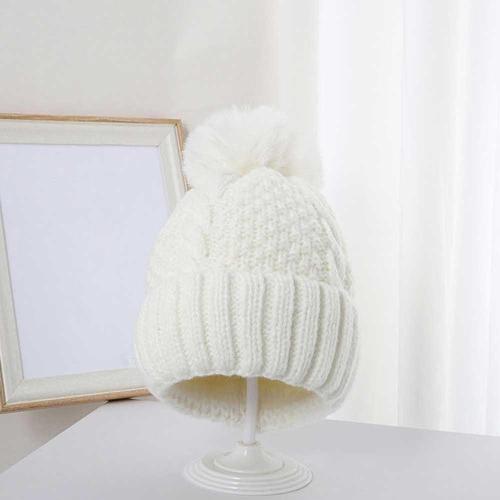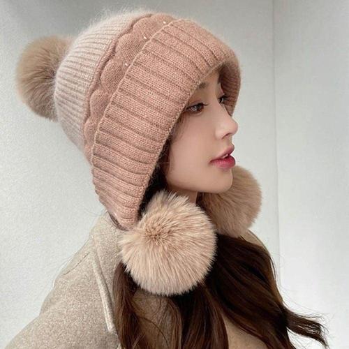 여성 배색 따뜻한 기모 안감 귀여운 니트 방울 모자 WFG7FYN