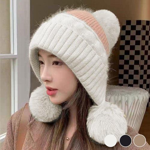 니트비니 여성 겨울모자 꽈배기 왕방울 귀도리모자 귀달이비니