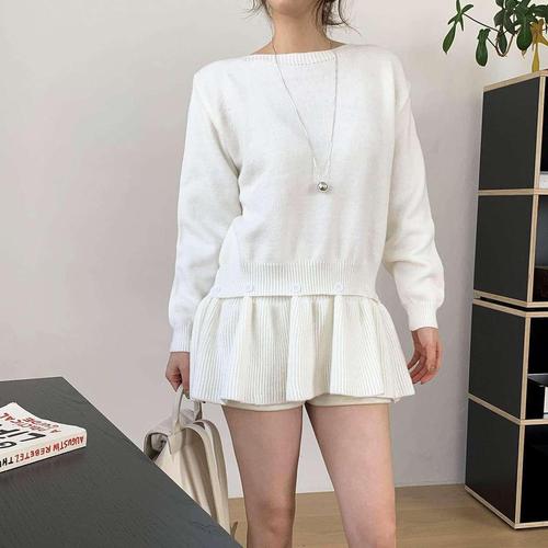 [시크블랙]두메리 프릴 레이어드 스커트 니트 세트