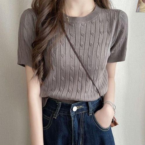 여성 케이블 반팔니트 베이직 여름 꾸안꾸 캐주얼룩 WFHVY1D