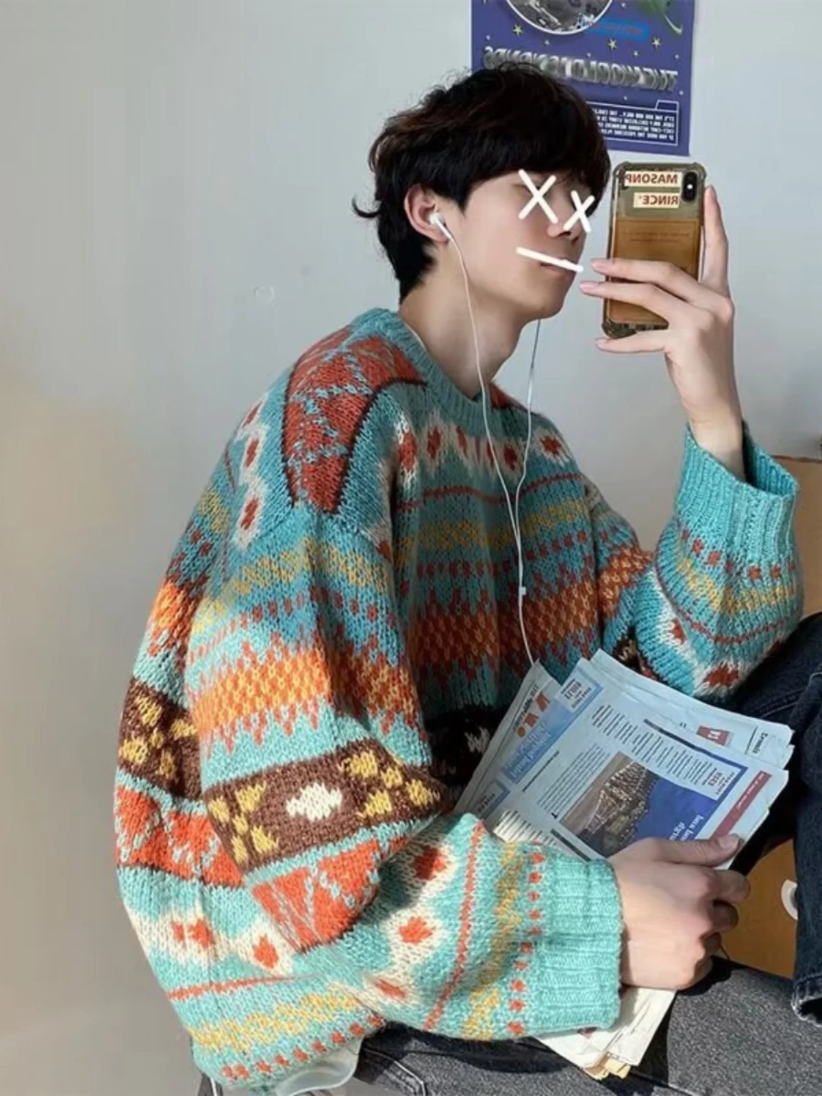 트렌디 한 일본식 남성 니트 스웨터 루즈 피트 컬러 블로킹 탑 자켓 가을 겨울 시즌 세련된 에스닉 트렌드