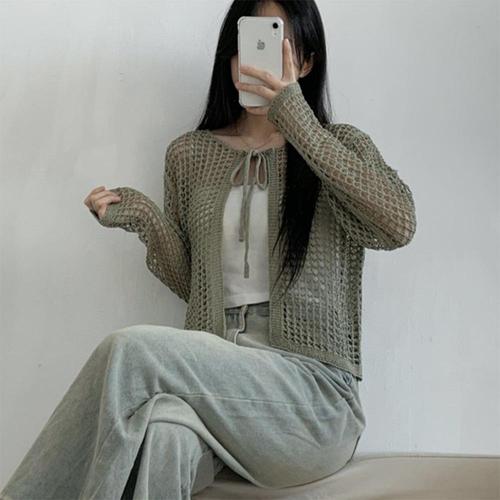 |KMJ65AC|여성용 네트 리본 긴팔 여름 가디건 커버업 니트