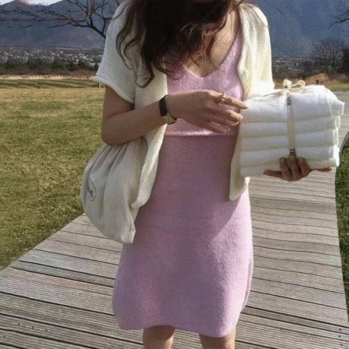 나시 니트 아노락 브이넥원피스 멜빵 여름 하객 WFKNXL3