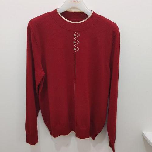 [올포유]겨울 여성 장식단추 반넥 니트(와인,브라운) ALSHN9141