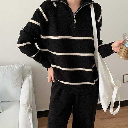 [핑크엘리제]스트라이프 하프집업 니트셋업 베로니투피스