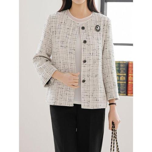 [드리다]봄 노카라 흰 화이트 트위드 빅사이즈 9부 정장 자켓 하객 모임 상견례