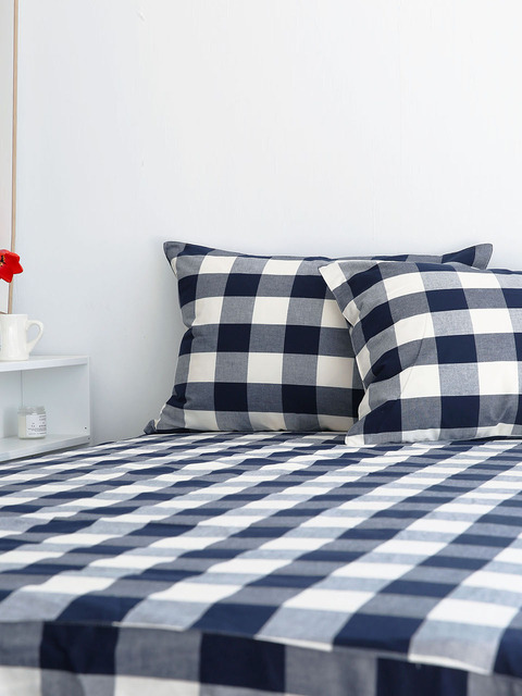 [브룬] 다우니 코튼 체크 매트리스커버(네이비)
