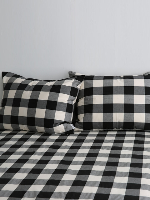 [브룬] 다우니 코튼 체크 매트리스커버(블랙)